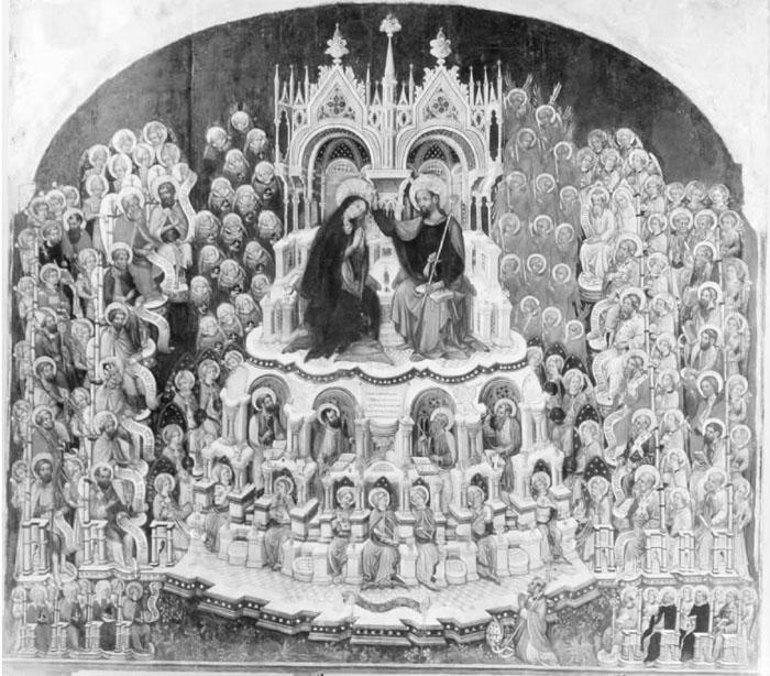 中世纪的等级想象图。雅各贝罗·德·菲奥雷:《天堂的圣母加冠》,1438年