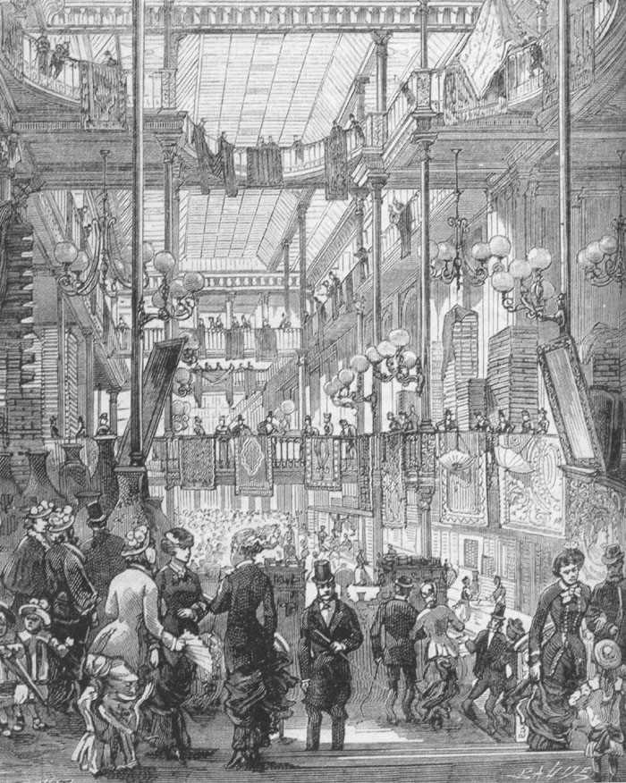 这些商场面向普通民众,而里面提供的商品在先前却只有皇室才能享用。1902年,芝加哥12层楼的马歇尔·菲尔德百货公司商场开张了,在其剪彩仪式上,商场经理戈登·塞尔弗里奇声称:“我们建造了这个巨型商场,面向的就是普通百姓。我们将致力于使这个商场成为普通百姓的商场,成为他们在市区里的家和购物大本营。”他还说,这个商场绝非只是为那些“感觉良好的富人”提供服务。