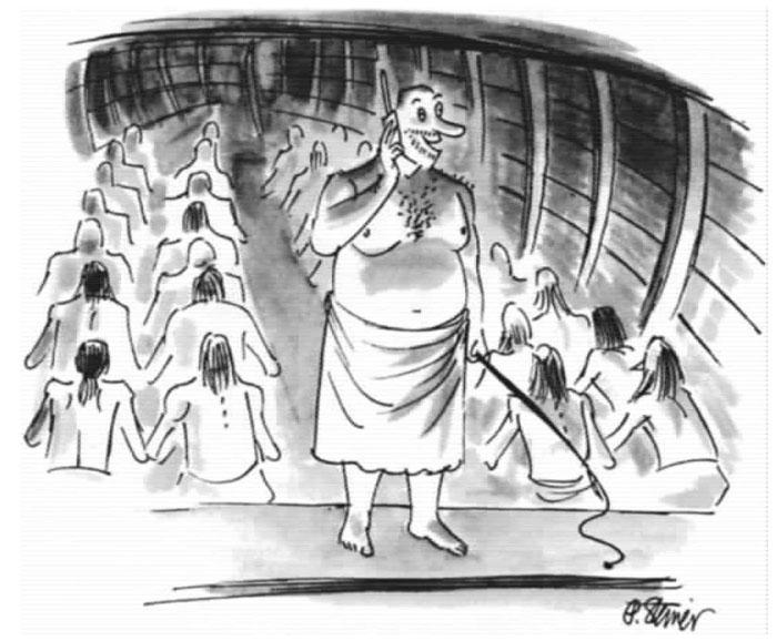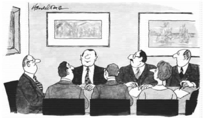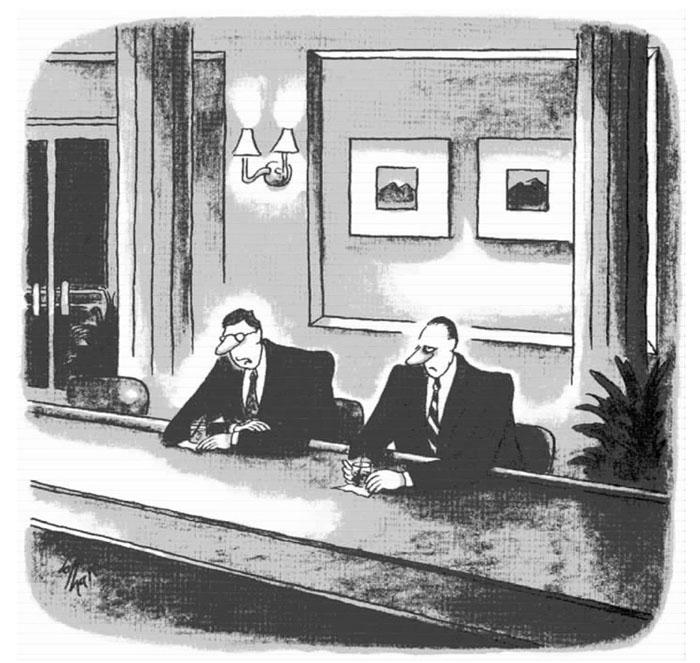在一个世纪以后的美国,仍然有大量的“邪恶和愚蠢”普遍存在于曼哈顿的名流身上,可供《纽约人》的漫画家自由发挥。在经济领域,许多主管人员有了一个新的兴趣,那就是对雇员要显得很友好。但颇为不幸的是,他们的这种兴趣仅仅是表面现象,他们的内心深处并没有这样去做的意愿。他们只是满足于用一套温文尔雅的专业语言来掩盖他们更加残忍的行为,他们希望能够以此给他们的剥削行为带来一丝尊严——虽然他们的剥削行为与以前地狱般的工厂相比并无多大的差别。漫画家不是那么好欺骗的。