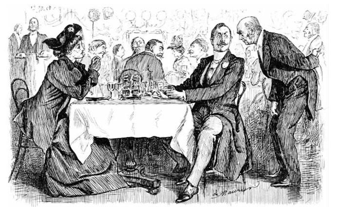 在19世纪后半期,另一种做作的习惯在英国上层社会流行开来:人们开始热衷于讲法语,特别是在饭店里,来体现庄重与显赫。《笨拙》杂志立即觉察到有一个新出现的缺陷需要纠正。