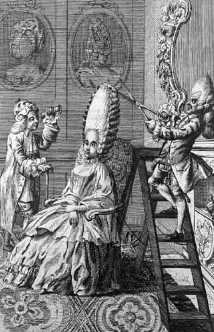 在英国18世纪晚期,年轻贵妇们非常流行头戴巨大的假发。这种荒唐的流行趋势惹恼了好多漫画家,他们快速地制作了一批漫画,以一种安全的方式来告诉这些妇女应该保持清醒的头脑——如同弗洛伊德认识到的那样,受批评的对象如果位高权重,那么漫画家很难直接表达他用漫画能够表达的想法。
